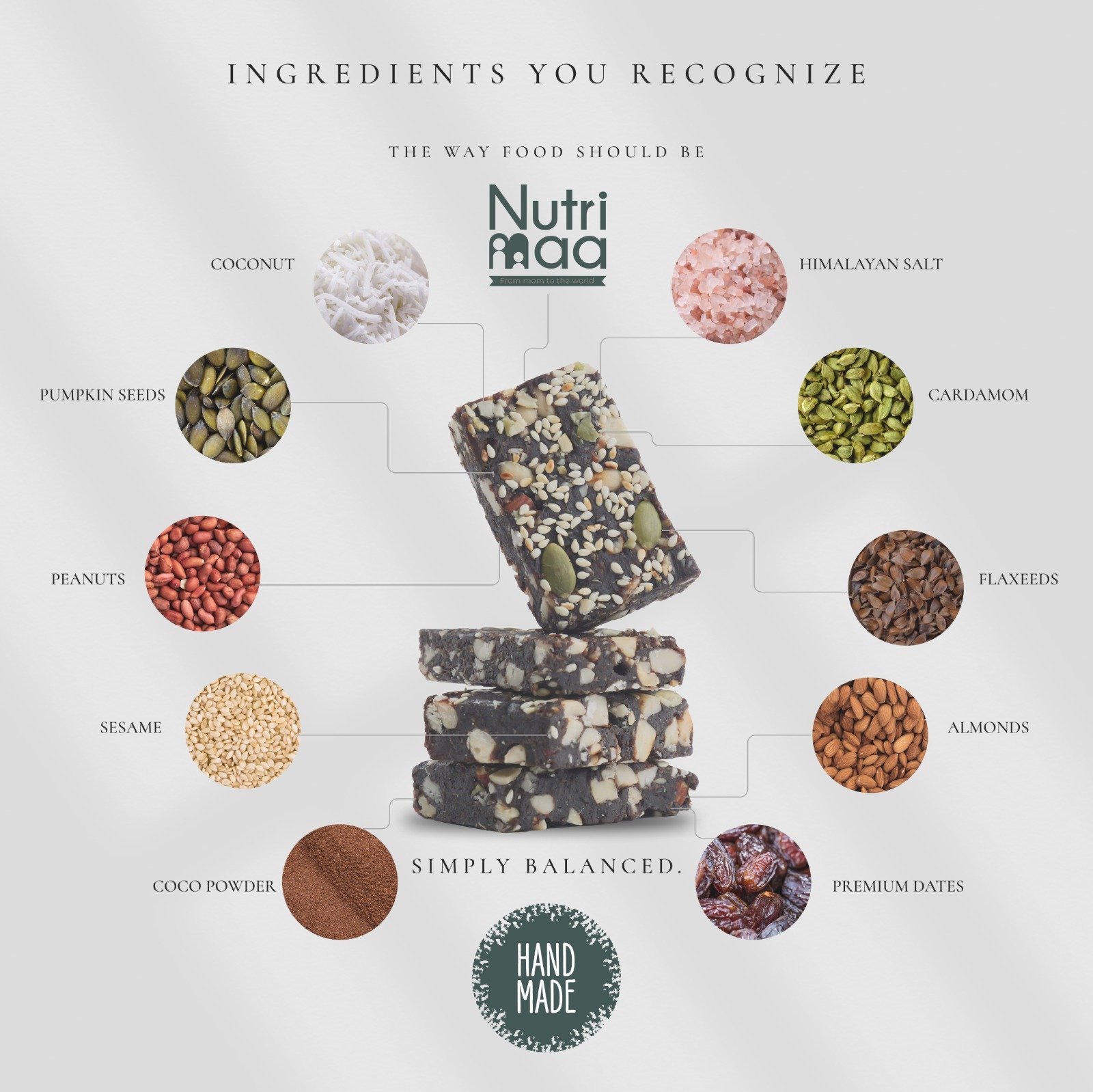 At NutriMaa, we are wrapping each NutriBites with non-toxic food grade paper, and consciously ditching the aluminium foil, itβs not a blunder but a bold move. You might see some nut oil on the wrapper, its real ingredients doing their happy dance.