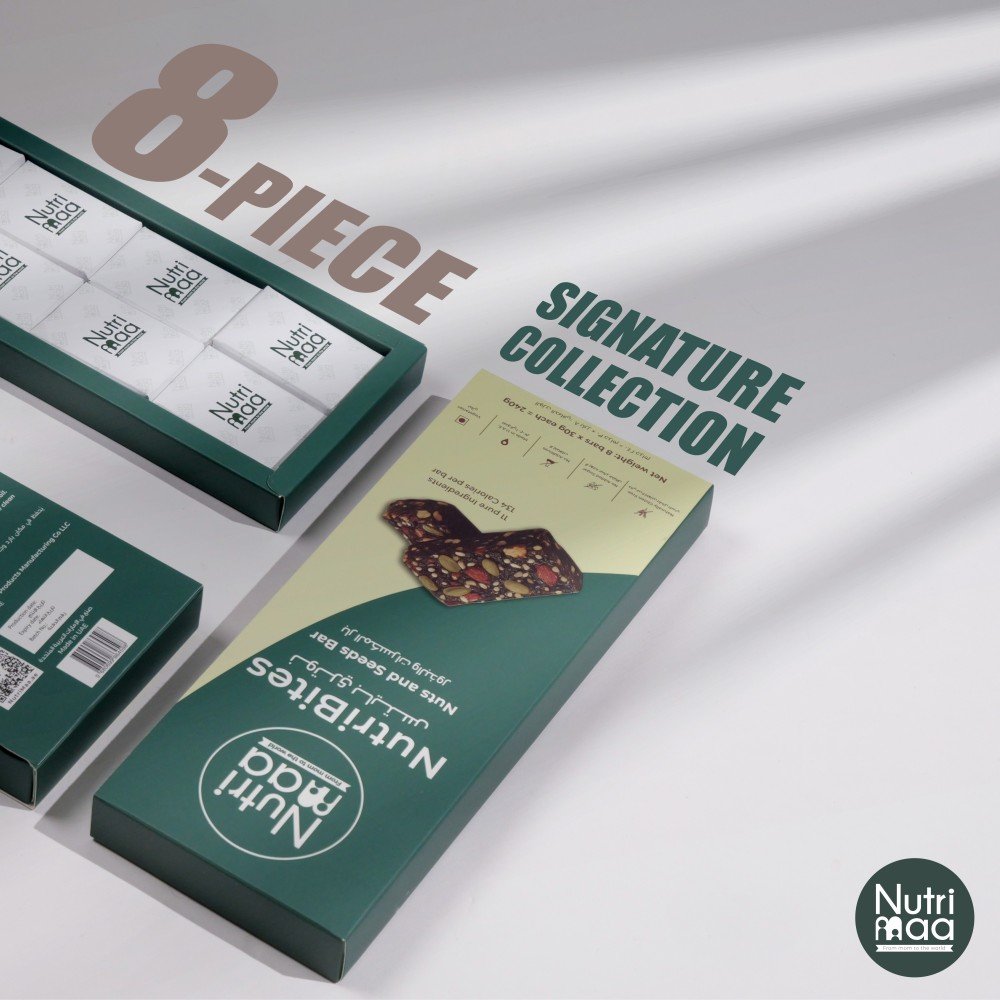 Crafted for daily nourishment, the Signature Collection includes 8 wholesome NutriBites that bring together taste and balance in every bite. Designed for families and individuals who value clean energy made from real ingredients — no preservatives, no palm oil, no nonsense.
